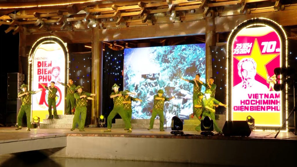 Bằng những bức tranh lớn, video và thông điệp ý nghĩa hiển thị trên màn hình LED, chương trình kỷ niệm 70 năm chiến thắng Điện Biên Phủ là một cách tuyệt vời để gợi lại những kỷ niệm và tôn vinh các anh hùng đã hy sinh cho chiến thắng này.